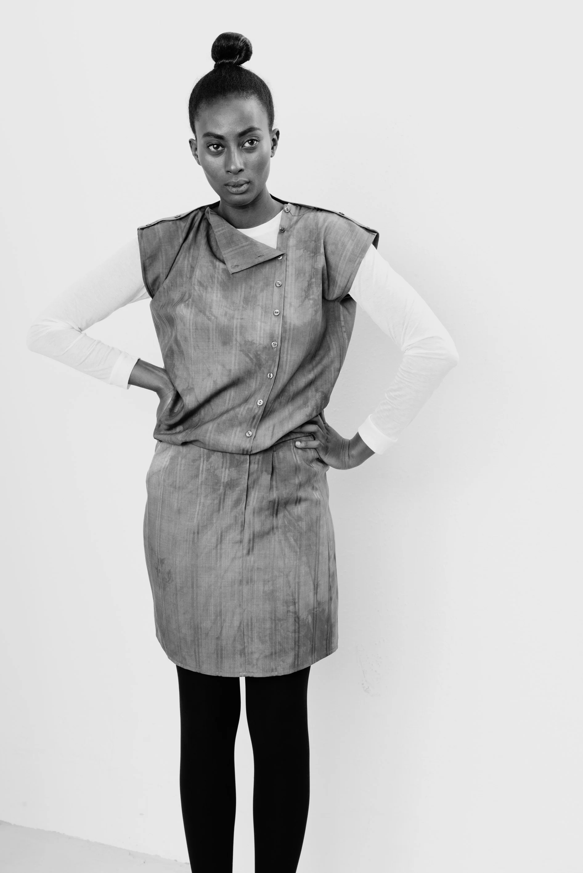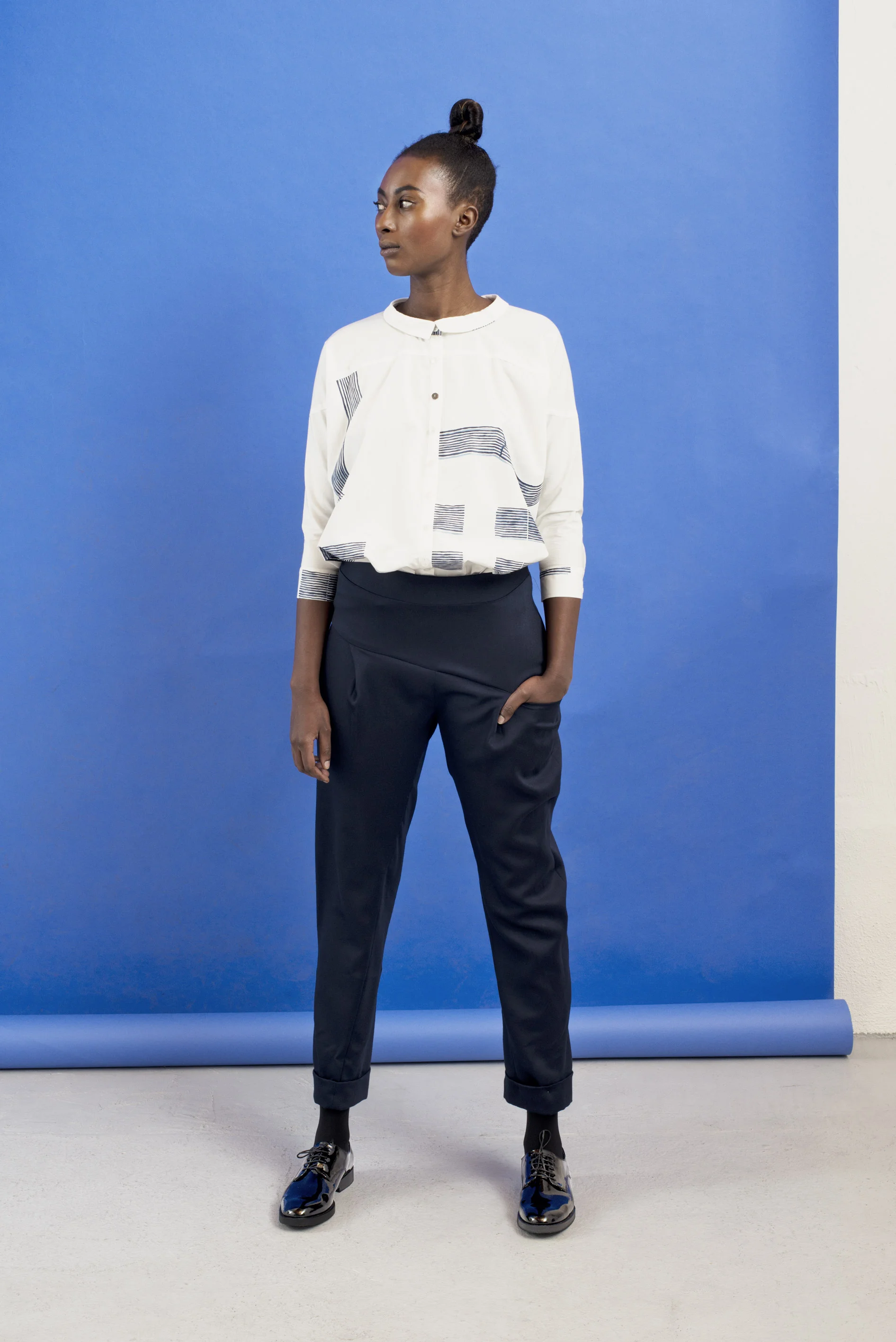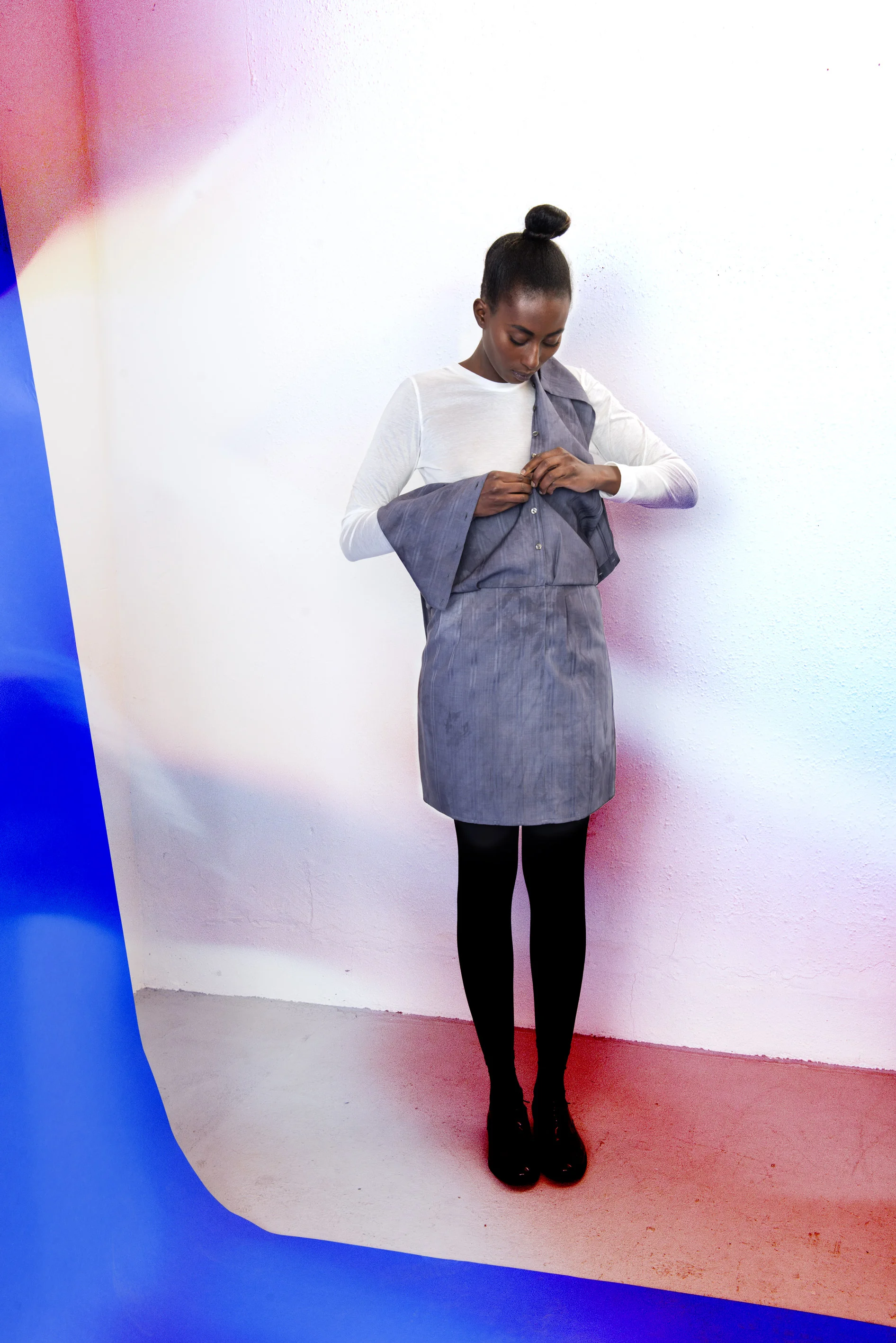 This collection celebrates the 5 year anniversary of the brand. The focus is on timeless pieces that can be worn in multiple ways. An invitation to travel light built on essential and durable garments. The collection is sprinkled with porcelain silver buttons made in collaboration with the Swiss ceramist Sylvie Godel. A unique print, designed by the textile designer Marie Jambers and screen printed by hand in Switzerland, adorns the collection with a festive and graphic touch.
