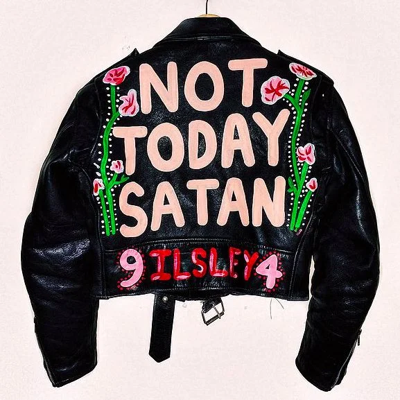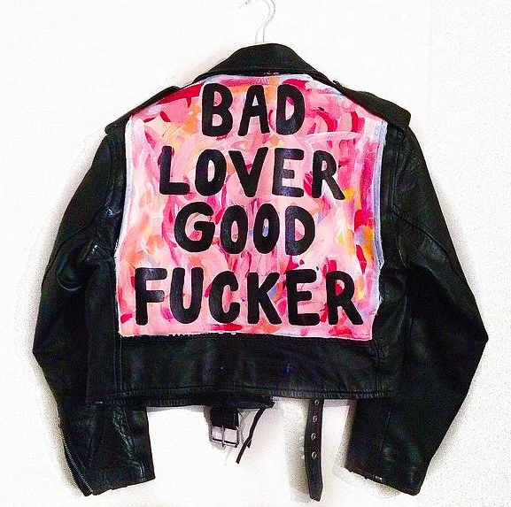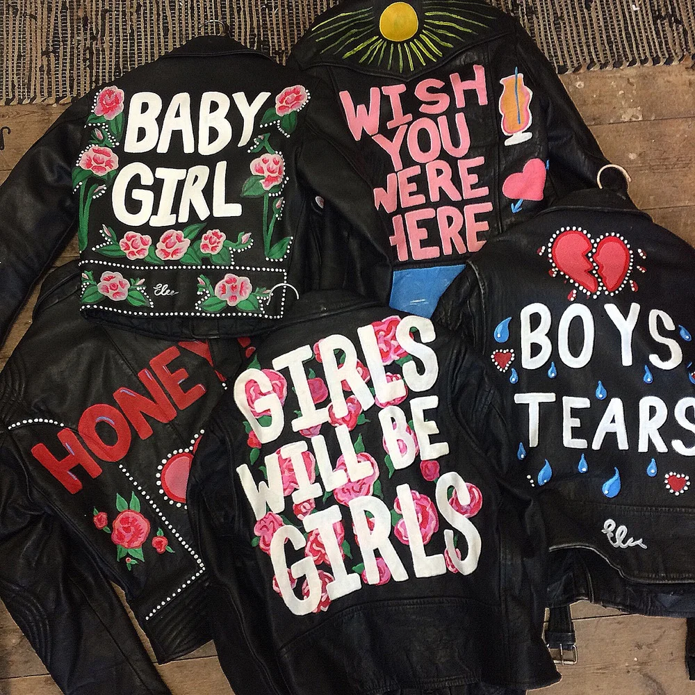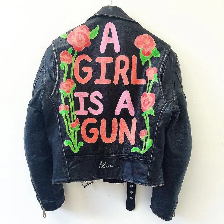 You would have to have been living on Mars not to have seen those of Elizabeth Isley, a young British artist who uses bold digital print making, photography, and painted leather jackets to "give a strong voice to bold women who aren’t scared to be honest with each other and unique to the world".
