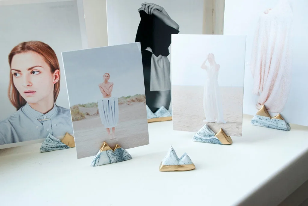 Flat surfaces are at a bit of a premium too. Between rabbit, cats and mushroom lamps there is not much space left for displaying anything but I'm thinking that these perfect little photo and card holders could help me displaying smaller prints.