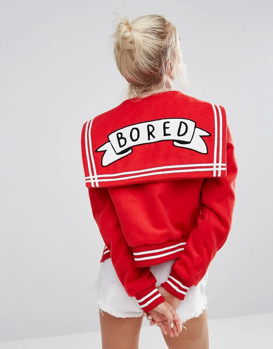 Lets start with the 'Bored' varsity jacket above. Perfection. Any fresher with any sense of humour and splash of style should be considering wearing this to your first lecture...