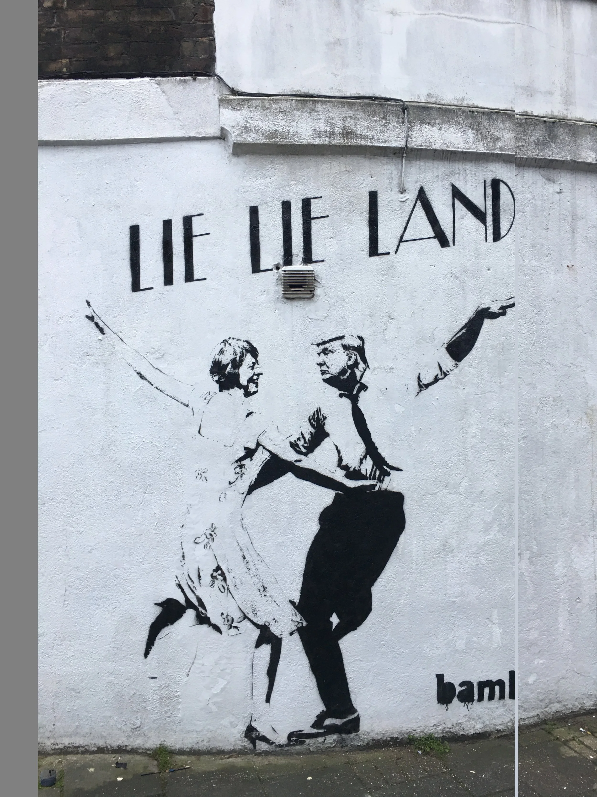 The work, entitled Lie Lie Land, features a dancing Theresa May and Donald Trump in the pose made famous by the movie La La Land.