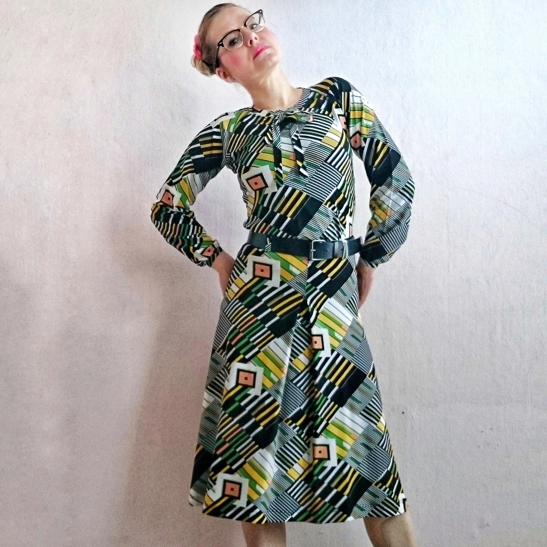 This 70's style geometric suit is utterly divine. In an ideal world I'd wear this with another two piece - a short sleeved shirt on top and matching trousers underneath, in a clashing print. How amazing would that be?