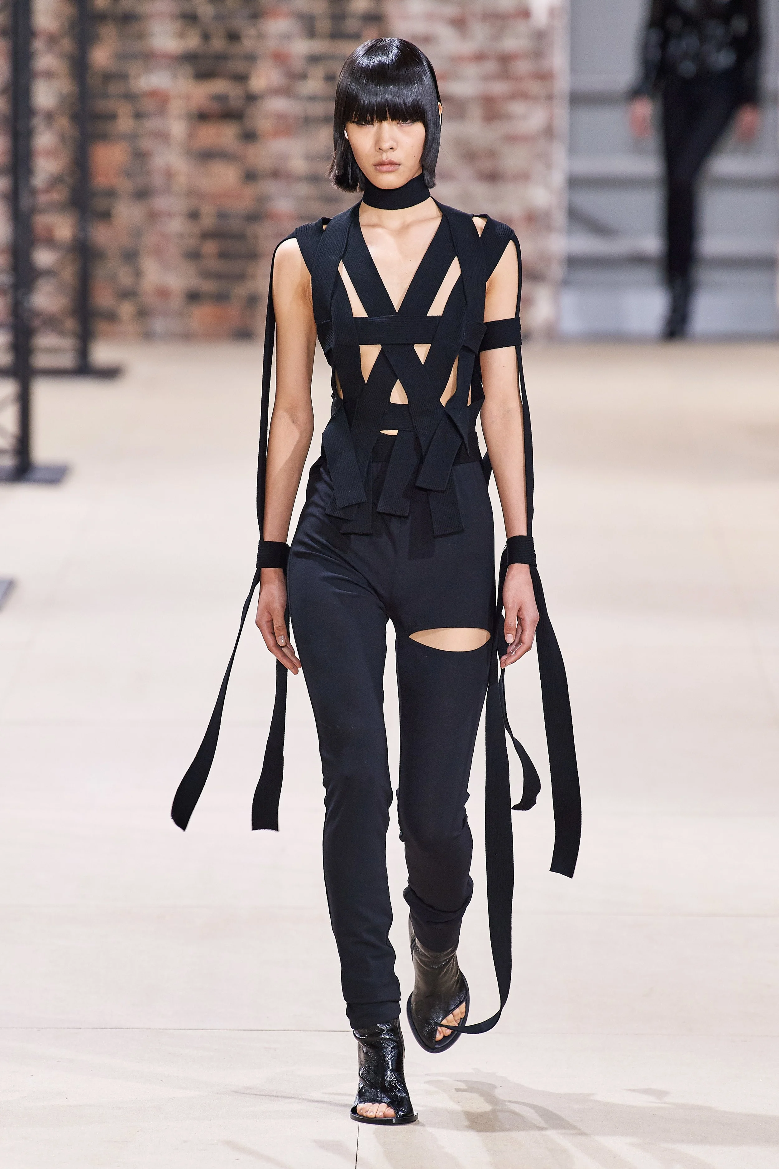The latest Ann D SS20 collection has left me in a monochrome daze. The collection was apparently inspired by the femme fatale in the song Jolene by Dolly Parton. The husband stealing femme Parton writes about would be a monochrome, fishnet, PVC clad Amazonian, according to Sébastien Meunier. I have totally no problems with that at all.