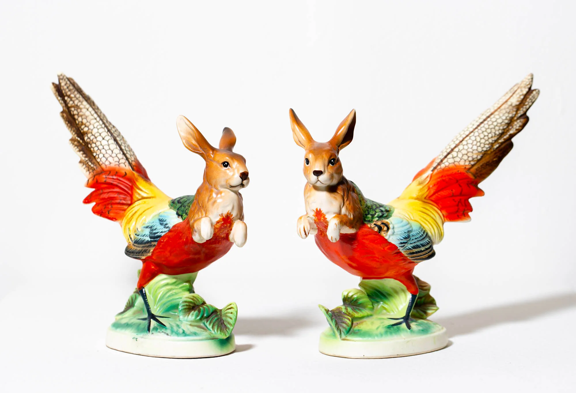 The Los Angeles based artist rescues abandoned figurines from thrift stores. Using ceramics restoration techniques she dismantles and combines, then seamlessly restores them creating uniquely twisted origin stories. All the works below are made from secondhand ceramic figurines customized with sculpting compound, acrylic paint & sealer.